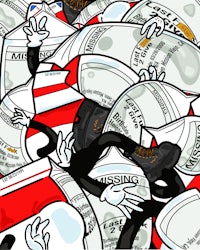 Inspired by 1920s Rubberhose, my twist involves chaotic, vibrant, compressed characters appearing smushed against glass.